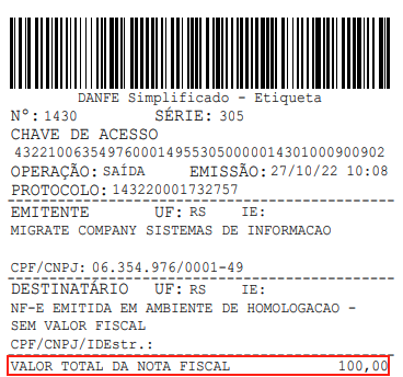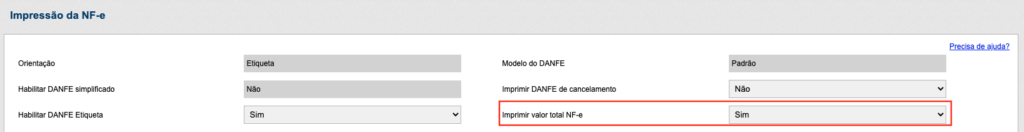 Para atender o ajuste Sinief 17/22, onde fica a critério de cada UF desobrigar o contribuinte em informar o valor total da NF-e no DANFE Simplificado Etiqueta, foi criado o novo parâmetro ‘Imprimir valor total NF-e’, que permite definir se o valor total da NF-e será impresso ou não no DANFE Etiqueta.