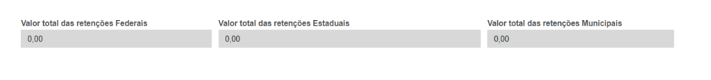 – Na aba Valores, foram incluídos três campos, destinados à informações do “Valor total das retenções Federais”, “Valor total das retenções Estaduais” e “Valor total das retenções Municipais”.
