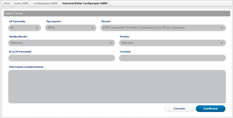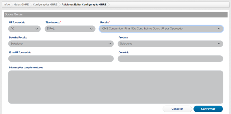 - Configurações GNRE: