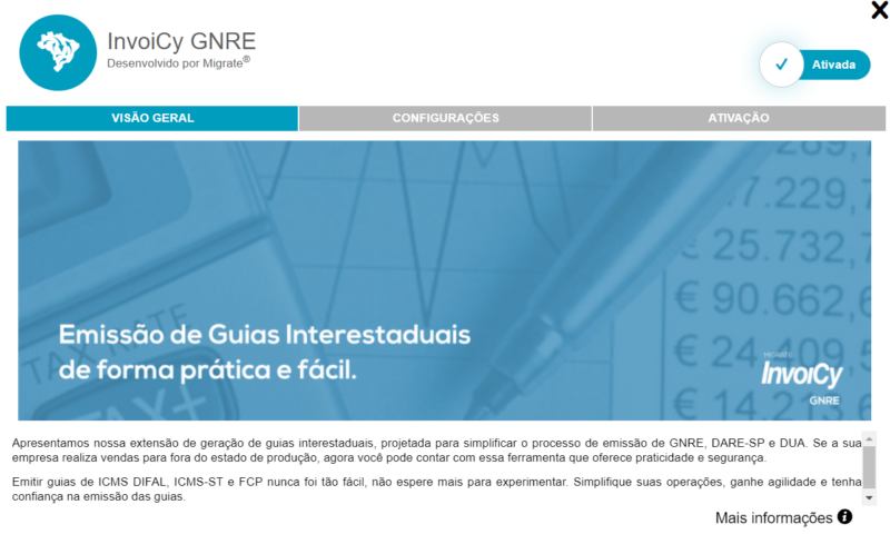 A nova extensão do InvoiCy foi projetada para simplificar o processo de emissão de GNRE, DARE-SP e DUA, permitindo a emissão de forma manual, automática ou via webservices com layout único possibilitando a integração com sistemas de gestão.