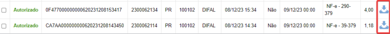 Se após a emissão da guia e concluído o processamento pela Sefaz, não houver erros, o status dela será “Autorizado”, permitindo o download e impressão. Que pode ser realizada clicando no ícone destacado na imagem a seguir.
