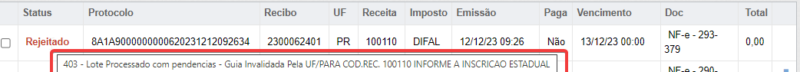 Se o processamento ainda não tiver sido realizado junto à Sefaz, o status estará como “Pendente”, sendo necessário aguardar o retorno por parte da UF.
