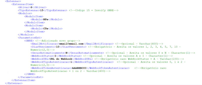 Para obter exemplos XML de integração com a extensão InvoiCy GNRE, clique aqui.