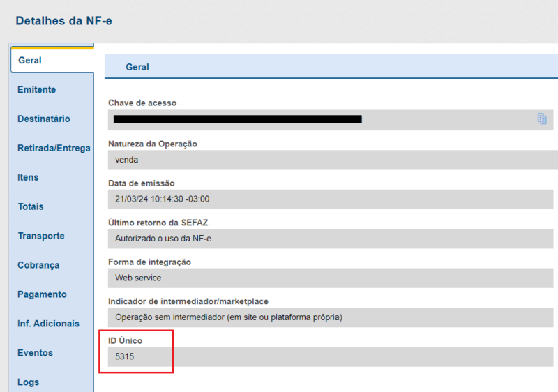 Na aba Geral nos detalhes do documento também foi incluído um novo campo onde pode-se verificar o ID Único do documento.