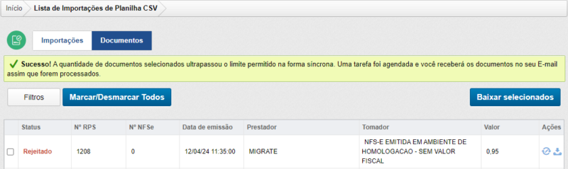 Para quantidades abaixo disso, o download ocorre de forma síncrona, baixando os documentos no mesmo momento.