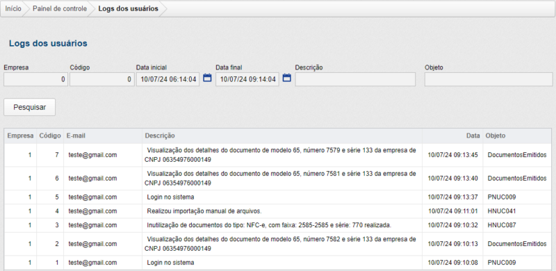 A partir dessa nova versão do InvoiCy, usuários do tipo “Parceiro” podem visualizar os logs de usuários do tipo “Normal”. Essa implementação oferece uma maior visão das alterações que são realizadas na plataforma e pode ser acessada através da tela de “Logs dos usuários”, localizada no painel de controle.