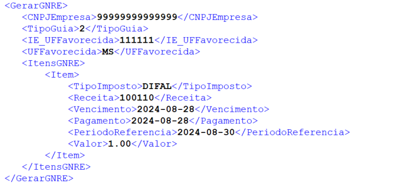 Para emissão de Guias por meio de integração via REST, a estrutura a ser enviada deve ser a seguinte: