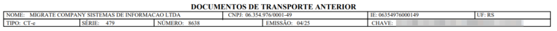 No DACTE as informações serão exibidas em novo bloco chamado “Documentos de Transporte Anterior”, conforme imagem a seguir.