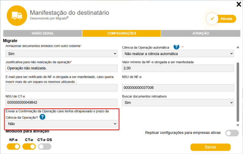 Alternativa para casos em que o prazo da Ciência da Operação foi ultrapassado