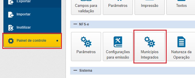 Através do InvoiCy, também é possível consultar os municípios integrados conosco, através do menu Painel de Controle, botão Municípios Integrados: